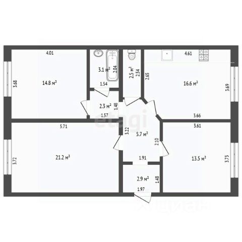Общая площадь - 86,3 м2, кухня-гостиная - 18 м2, три спальни - 19, м2 - 14,5 м2 - 15 м2 ( в одной спальне предусмотрена просторная гардеробная ), прихожая - 10 м2, высота потолков - 2,7 м, год постройки 2020 г.