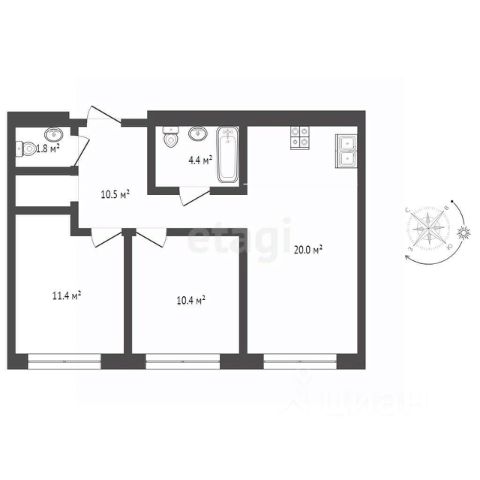 Номер в базе: 8492623 Продается квартира на вторичном рынке в Тюмени.