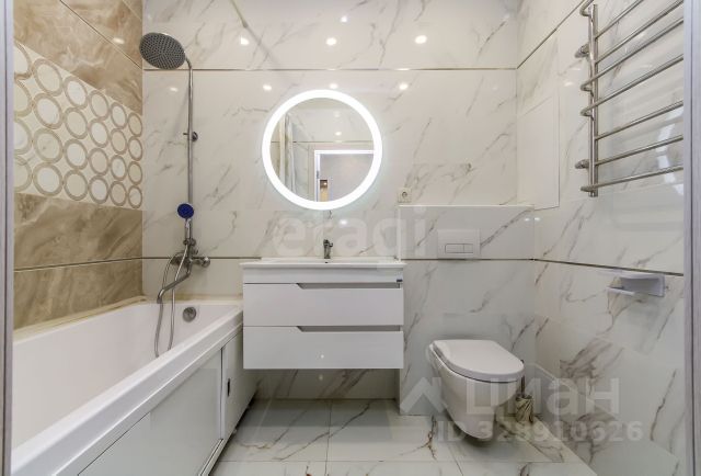 В квартире два санузла: в одном установлены стиральная и сушильная машины Bosch, во втором — ванна и бойлер на 100 литров.