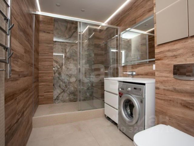 В квартире два санузла: в одном установлены стиральная и сушильная машины Bosch, во втором — ванна и бойлер на 100 литров.