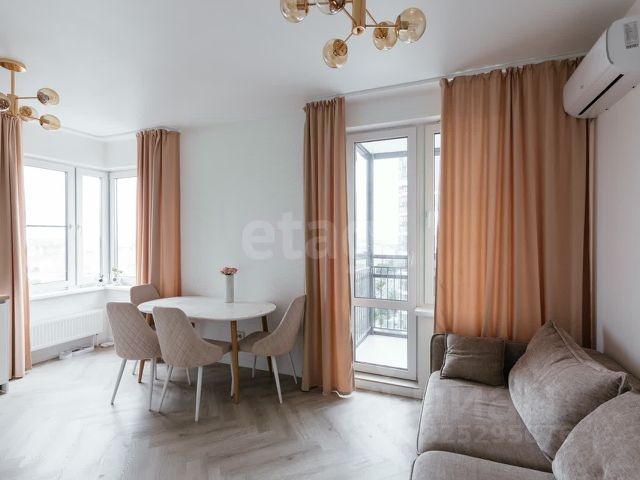 Две изолированные комнаты детская и взрослая спальни, кухня-гостиная, остекленный балкон, раздельный санузел.