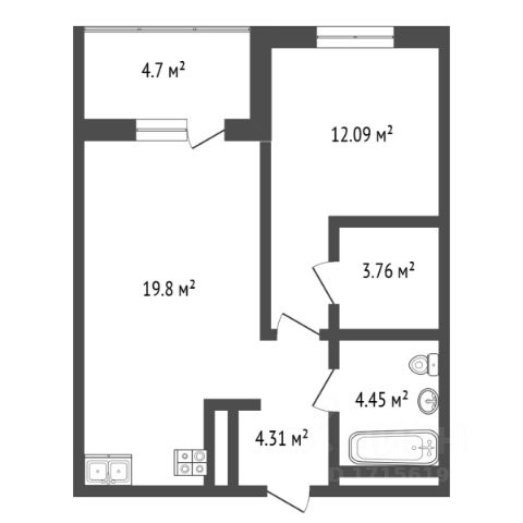 Лоджия — 4,7 м², с витражным остеклением,