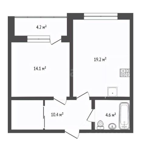 Светлая, просторная квартира расположенная на 4-м этаже состоящая из спальни площадью 13,59 кв.м., гостиной 16,28 кв.м., и следующих вспомогательных помещений: кухня площадью 7,96 кв.м. (кухня не отделена внутренней перегородкой от гостиной), совмещённый санузел площадью 4,86 кв.м., коридор площадью 8,88 кв.м., а также лоджии площадью 2,08 кв.м. (с учётом понижающего коэффициента 0,5).