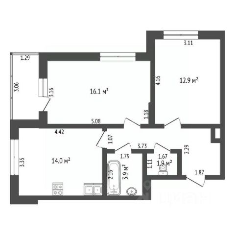 3 изолированные жилые комнаты, просторная гостиная с кухней-нишей, раздельный санузел и просторная ванная, 1 утепленный балкон, вместительная прихожая.