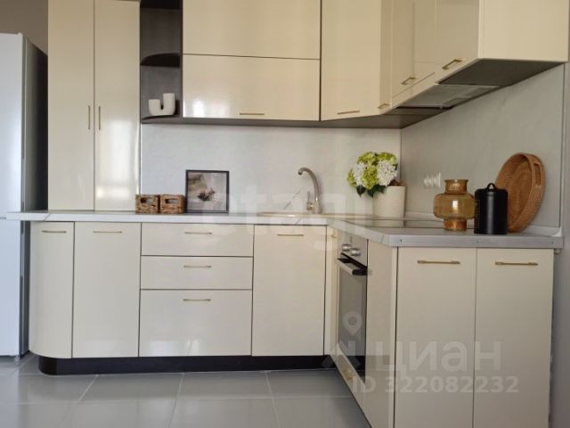 • На кухне установлен кухонный гарнитур, включая холодильник и электрическую плиту — всё, что нужно для комфортной готовки.