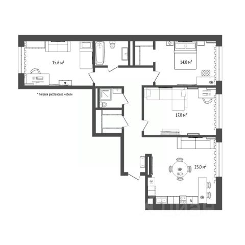 1.Планировка-мечта! Более продуманную, гармоничную и функциональную планировку сложно себе представить. Общая площадь квартиры 93.2 кв.м. Начинается она, конечно, с просторной прихожей, которая сразу задает нужное настроение - воздуха и света, далее с правой стороны мы попадаем в большую 23 кв.м, правильной формы, кухню-столовую-гостиную с огромным окном почти во всю стену, следующая комната свободного назначения 17 кв.м с витражным остеклением, в нашем случае это был кабинет +комната отдыха у камина (она может стать для вас, исходя из потребностей, гостевой комнатой, спальней, детской), с левой стороны от входа располагаются, логично, гардеробно-хозяйственная комната, первый сан.узел, который в том числе может быть гостевым, в завершении мы попадаем в приватную зону: справа - спальня родителей 14 кв.м со своей гардеробной, напротив нее расположена большая детская 15.6 кв.м (где достаточно места для комфортного размещения 2-х детей одного пола). Между спальнями располагается приватный сан.узел.
