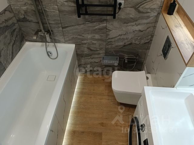 В квартире выполнен качественный ремонт. Потолок- натяжной, на полу - ламинат- 33 класса. В квартире имеется 2 санузла: один выложен плиткой, второй - используется как кладовая комната.