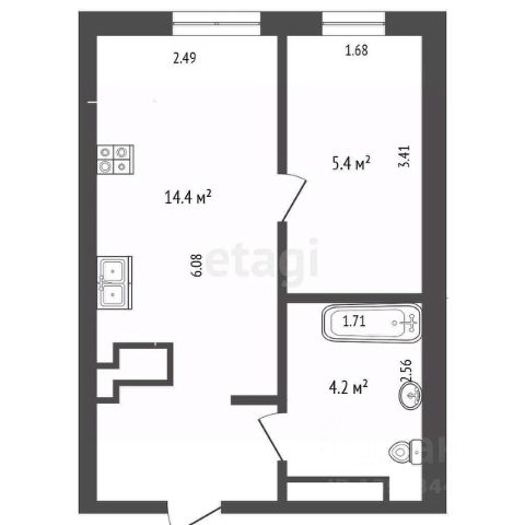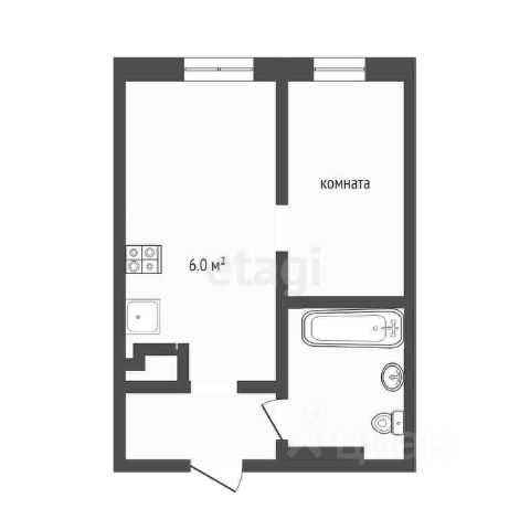 Площадь: 39,3 м² (жилая — 20 м² / кухня — 16 м²)