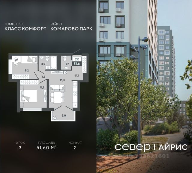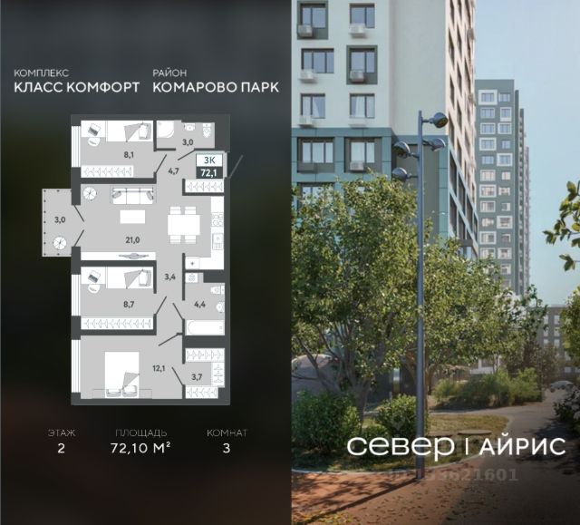 Продаётся квартира площадью 60.50 м2 в жилом комплексе "Айрис". Квартира находится на 2 этаже дома, который будет введен в эксплуатацию в 3 квартале 2027 года. Жилая площадь квартиры 16.50 м2, площадь просторной кухни — 16.70 м2. Среди особенностей планировки — изолированные комнаты с окнами на одну сторону, 1 совмещённый санузел. Жилой комплекс "Айрис" — это: фиджитал-квартал в Тюмени дома высотой от 7 до 25 этажей квартиры с системой "Умный дом" цифровые технологии как элемент благоустройства Срок сдачи — III кв. 2027 Окружение В нескольких минутах ходьбы от дома — парк "Комарово" с волейбольной площадкой, открытым кинотеатром, зонами для барбекю и катком. Неподалеку от Airis находится центр иппотерапии, где можно покататься на лошадях и взять уроки верховой езды. На территории Airis появится собственный парк с прогулочными аллеями. Инфраструктура В 5-10 минутах от квартала открыты 2 детских сада и гимназия. На шопинг можно отправиться в торговые комплексы "Колумб" и "Кристалл" — они находятся недалеко от дома. Благоустройство Уютный двор — приватное пространство для жителей. В беседках можно будет почитать книгу в тишине, а в тени деревьев устроиться на пикник. На крыше многоуровневого паркинга будет лаунж-зона с кинотеатром, баскетбольная площадка и воркаут-пространство, где можно позаниматься с виртуальным тренером — достаточно отсканировать код. Лобби Интерьеры лобби выполнены в пастельных тонах с элементами фиджитал-решений. Для отдыха и ожидания гостей создана лаунж-зона. Также есть гостевые санузлы. Колясочные Возвращайтесь налегке после прогулки с малышом — оставить коляску можно в специальном помещении на первом этаже. Кладовые Для сезонных и габаритных вещей предусмотрены отдельные кладовые на цокольном этаже. В каждом помещении уже проведено электричество и выполнена стяжка пола. Паркинг На территории — два многоуровневых наземных паркинга. Один из них примыкает к домам — из него можно напрямую пройти в парадные. Планировки Планировки квартала — от компактной студии до сити-хауса с собственным палисадником — соответствуют любым жизненным сценариям. Можно выбрать квартиры с террасами и готовыми дизайнерскими интерьерами.