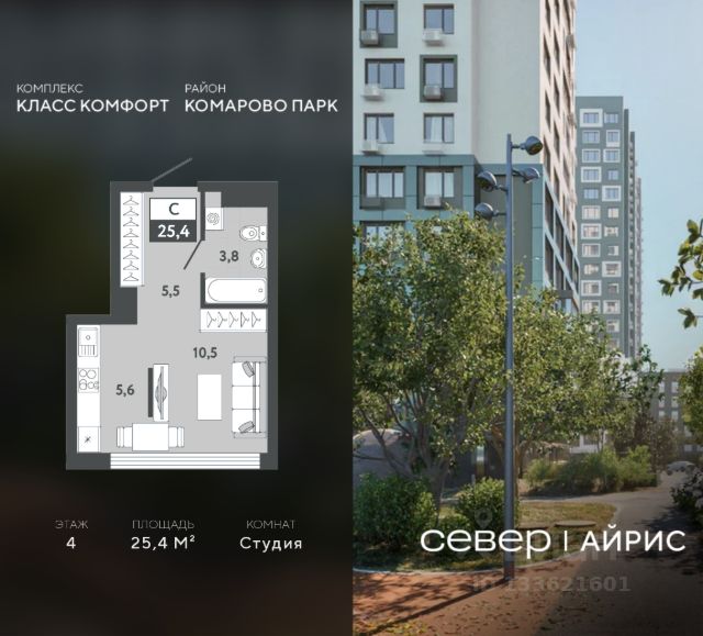 Продаётся квартира площадью 25.4 м2 в жилом комплексе "Айрис". Квартира находится на 4 этаже, жилая площадь квартиры 10.5 м2, площадь кухни-ниши — м2 Срок сдачи — III кв. 2027 "Айрис" — Смарт-квартал для активной и комфортной жизни "Айрис" расположен в новом экологически чистом районе Комарово Парк — локации без промышленного прошлого,в окружении трёх зелёных парков, до которых можно дойти за 10 минут. Здесь свежий воздух, природа и тишина сочетаются с городским комфортом. Рядом вся ключевая инфраструктура: ТРЦ "Колумб" и "Кристалл", Гимназия 4, Академия спорта, детские сады 60 и 95. Смарт-архитектура обеспечивает хорошие виды и естественное освещение. Разновысотная застройка формирует ощущение открытого пространства, а панорамные окна наполняют квартиры светом. Дворы без машин — безопасные игровые и спортивные зоны, зелёные пространства, места для отдыха и спорта. Большой выбор планировок — от студий до трёхкомнатных квартир, а также редкие форматы: террасы, зимние сады и сити-хаусы. Дополнительные удобства — кладовые на этажах, лаундж-парадные, два наземных паркинга. Продуманная транспортная доступность Благодаря продуманной транспортной доступности "Айрис" одинаково удобен и для автомобилистов, и для тех, кто пользуется общественным транспортом. Район остаётся тихим, при этом сохраняется связь с основными направлениями города: • 2025 минут до центра Тюмени • 67 минут до объездной дороги • 5 минут до Московского тракта Смарт-пространство для жизни без компромиссов "Айрис" предлагает продуманные пространства, которые поддерживают комфортный и активный образ жизни. На крышах паркингов размещены лайфстайл-зоны: площадки для тренировок, кинотеатр под открытым небом, зелёные террасы для йоги и отдыха — всё, что нужно для активной городской жизни рядом с домом. Максимум света и воздуха в каждой квартире Пространственные решения усиливают ощущение простора: • панорамные окна высотой 1,652,4 м; • витражные балконы и лоджии, расширяющие визуальные границы; • потолки от 2,72 м на типовых этажах до 4,62 м на первом. Многофункциональные крыши паркингов: новый уровень городской инфраструктуры Жители "Айрис" могут заниматься спортом, отдыхать и встречаться на свежем воздухе. — прямо на крышах паркингов. Здесь расположены: • воркаут-зона с тренажёрами и цифровыми программами тренировок — поддерживать форму можно рядом с домом; • кинотеатр под открытым небом, который летом становится центром вечерней жизни квартала; • зелёные террасы — тихие места для отдыха, чтения и встреч; • йога-терраса, где удобнее всего заниматься на рассвете и закате.