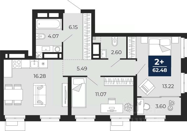 2-комн. квартира от застройщика с предчистовой отделкой в ЖК "Айвазовский City" на 7 этаже. Общая площадь: 62.48 кв.м., жилая: 24.29 кв.м., площадь просторной кухни-столовой: 16.28 кв.м. Угловая квартира, идеально подойдет любителям тишины и панорамных видов. В квартире одна лоджия, один совмещенный и один раздельный санузел. Высота потолков 2.7 м. Дом монолитный, многоподъездный, высотой 24 этажа. Квартира находится во 2-й секции в корпусе ГП-13. На этаже 6 квартир. В подъезде 1 пассажирский и 1 грузовой лифт. Окончание строительства - 4 квартал 2027 года. Оформление сделки по договору долевого участия. Новый жилой район располагается в живописном месте на берегу Туры в центральной части города. Принципиально новое пространство для жизни в центре современного города для тех, чьи мечты сбываются, кто нацелен на постоянный рост, перемены к лучшему для себя и своих близких. Каждая деталь Айвазовский City вдохновляет и заряжает на новые свершения: авторская архитектура, сбалансированная продуманная инфраструктура, дизайнерские дворы со спортивными и детскими площадками, парковые зоны с фонтанами, водный канал, украшающий центральный прогулочный маршрут района и многое другое. В 2019 года проект стал лауреатом престижной премии Urban Awards 2019 в номинации "Лучший строящийся региональный жилой комплекс бизнес-класса". Главная особенность Айвазовский City - соседство разных архитектурных школ в рамках одного дома. Изысканная классика, выразительная эклектика и оригинальный модерн - жить в одном из таких домов настоящий повод для гордости. Айвазовский City это идеальное сочетание комфорта, технологий и развитой инфраструктуры. Вход в подъезд возможен с улицы и со двора. Отправляясь на работу или за покупками, жители могут выйти с внешней стороны дома, а для прогулки с ребенком со стороны двора. Экологически чистые материалы и энергосберегающие технологии, качественное освещение общественных зон, видеонаблюдение по всей территории жилого района (в том числе в подъездах, лифтах и в подземном паркинге), закрытые дворы с доступом только для жителей Айвазовский City. Часть домов в Айвазовский City будут оснащены подземным паркингом. Востребованный в нашем климатическом поясе формат хранения автомобилей защитит собственность владельца в любое время года. Аккредитация в банках: ПАО Банк "ВТБ", ОАО "Альфа-Банк", "Сбербанк России", ПАО "Газпромбанк", ПАО Банк "ФК Открытие" и других. #26v9fA