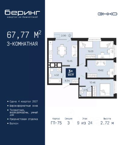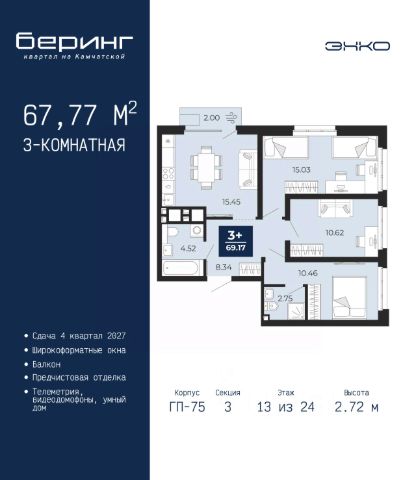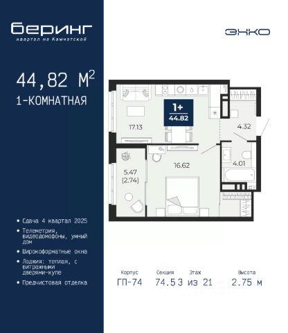 Просторная 1-комн. квартира с предчистовой отделкой в ЖК "Беринг" на 13 этаже. Общая площадь: 38.15 кв.м., жилая: 9.87 кв.м., площадь просторной кухни-столовой: 15.36 кв.м. Все окна выходят на одну сторону. В квартире один балкон, один совмещенный санузел. Высота потолков 2.72 м. Дом монолитный, многоподъездный, переменной этажности, от 17 до 24 этажей. Квартира находится во 2-й секции высотой 19 этажей в корпусе ГП-75. На этаже 7 квартир. В подъезде 2 пассажирских и 1 грузовой лифт. Окончание строительства - 4 квартал 2027 года. Оформление сделки по договору долевого участия. Подобно знаменитому исследователю, мы чувствуем себя первооткрывателями этой локации. Хотим показать новую суть места, сформировать для вас жизненный опыт, которого ещё не было. Беринг — район зелёного цвета. Беринг — район, который откроется вам с другой стороны. Впечатлит новым уровнем комфорта и качеством жизни. Беринг — открытие на карте города. Первый квартал расположен в районе Тура, в границах улиц: Камчатская Западносибирская Энтузиастов. Вокруг уже есть всё для того, чтобы ежедневная рутина была лишь частью жизни и не доставляла дискомфорта. Школы и детские сады, магазины и аптеки, поликлиника, места для семейного отдыха, пеших и велопрогулок, и даже рыбалки. Масштабное озеленение дворов — визитная карточка ЭНКО и ваш оазис спокойствия, чтобы отвлечься от повседневности. Раскидистые деревья, кустарники, травы и цветы — осталось остановиться, вдохнуть и расслабиться, глядя на эту природную красоту. Стилистика подъездов продолжает концепцию Беринга, вдохновлённого Камчаткой: сдержанный, но при этом впечатляющий дизайн соседствует с удобством и функциональностью. #26g91E