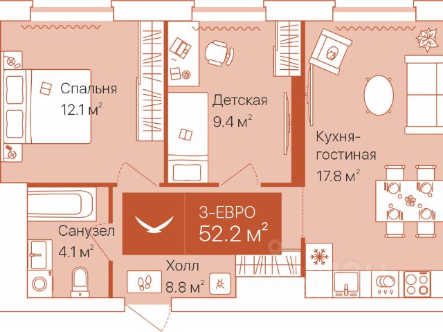 Условия покупки для этой квартиры: Cтавка 7% для всех. Срок ставки 7 лет. Ежемесячный платеж 50 089 руб. в месяц. Первоначальный взнос 20% или 1 883 382 руб Евротрехкомнатная квартира площадью 52,2 м² Планировка с двумя отдельными спальнями. Кухня-гостиная и спальня с увеличенными окнами. В холле просторно — есть ниша под шкаф. В квартире выполнена предчистовая отделка, поэтому ремонт пройдёт проще и быстрее. Стены выровнены и оштукатурены, пол готов к финишному покрытию. Установлены входная сейф-дверь, пластиковые окна, розетки и выключатели. Дом построен на улице Республики. ЖК сдан. Рядом всё, что нужно: Гилёвская роща в 7 минутах на машине, школа и детский сад в пешей доступности, кафе, пункты выдачи и пешеходная аллея возле дома. Двор без машин. Для автомобилей сейчас есть гостевая парковка рядом и строится многоуровневый паркинг. Для отдыха во дворе сделали амфитеатр, поставили перголы с гирляндами и подготовили многоуровневое озеленение. Для маленьких жителей готова детская площадка из натуральных материалов. Чтобы было безопасно, по периметру домов работает видеонаблюдение. ЖК построил ПСК Дом девелопмент — застройщик с фокусом на развитие Тюмени с 26-летним опытом на рынке недвижимости. Способы покупки: — ипотечные программы — обмен вашего жилья на новую квартиру — дистанционная покупка — рассрочка Узнать дополнительную информацию и записаться на встречу в офисе продаж можно по номеру, указанному в объявлении.