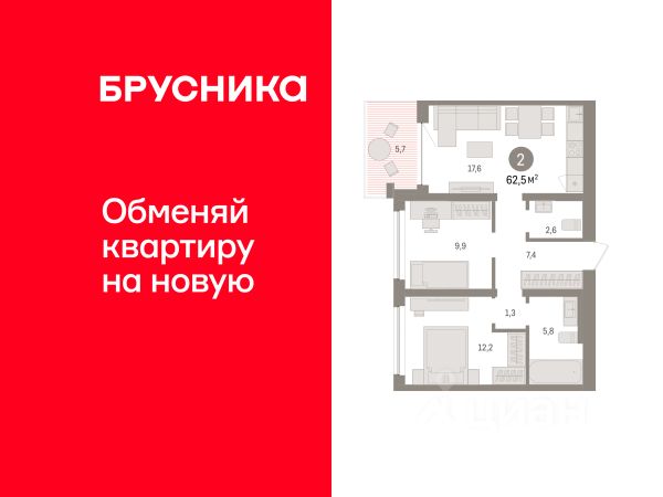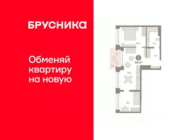 2-комн. квартира с предчистовой отделкой в ЖК "Дом у озера" на 7 этаже. Общая площадь: 61.03 кв.м., жилая: 22.7 кв.м., площадь просторной кухни-гостиной: 19.1 кв.м. Комнаты изолированные, все окна выходят на одну сторону. В квартире один балкон, один совмещенный и один раздельный санузел. Высота потолков 2.7 м. Дом монолитный, многоподъездный, переменной этажности, от 1 до 8 этажей. Квартира находится во 2-й секции высотой 8 этажей в корпусе 2. На этаже 6 квартир. В подъезде 1 грузовой лифт. Окончание строительства - 2 квартал 2026 года. Оформление сделки по договору долевого участия. Квартира с кухней-гостиной и двумя спальнями в Доме у озера. Особенности планировки: второй санузел, лоджия, предчистовая отделка. квартиры в нашей базе: ДМУ-02-2-2.7.4. "Дом у озера" является продолжением "Европейского квартала". Он расположен в центре заречного района города. В 2030 году здесь появится квартал, состоящий из урбан-вилл, таунхаусов, секционных домов и башни. Вокруг уже сформирована необходимая инфраструктура: детские сады, школы, спортивный комплекс, продуктовые магазины, аптеки, кофейни, рестораны и салоны красоты. Путь до центра города занимает 7 минут на машине. Озеро Тихое — ценный рекреационный ресурс. Брусника вернула ему прежнее значение и сделала новой точкой притяжения для жителей микрорайона. Ключевым элементом концепции благоустройства стала вода. В каждой части квартала архитекторы нашли для нее свою форму. Вдоль пешеходных улиц разместили искусственные ручьи, на центральной площади — фонтан и дождевые сады. Основная точка притяжения жителей — озеро и выходящий на его сторону променад. Здесь мы организуем смотровые площадки и расположим летние террасы кафе и ресторанов. Тесную связь застройки с ландшафтом обеспечивает многоуровневое озеленение. Буфер из деревьев и кустарников по периметру квартала превращается в естественный ветрозащитный экран. Такое решение позволяет создать на территории "Дома у озера" комфортный микроклимат. Подъезды "Дома у озера" с прозрачными входными группами и большими лифтами. Для мест общего пользования архитекторы разработали новую интерьерную коллекцию, вдохновленную эклектичными восточными мотивами. В отделке сочетаются коричневый, желтый и белый цвета, повторяющие колористические решения фасадов. Декоративные перегородки, установленные в лобби, напоминают машрабию — элемент арабской архитектуры в виде узорной решетки. За счет мягкой мебели, многоуровневого освещения теплых оттенков и предметов декора (например, зеркал и картин) холлы воспринимаются как продолжение квартиры. #z5cSBZ