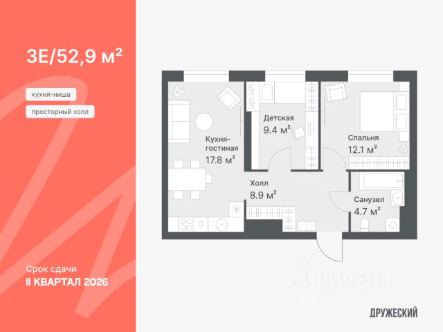 Еврочетырехкомнатная квартира площадью 95,9 м² Просторная квартира в европейской планировке. Окна выходят на две стороны. Одно из окон в санузле мастер-спальни, чтобы обеспечить естественный свет и возможность проветривать помещение. В квартире предчистовая отделка: стены оштукатурены и выровнены по общему уровню, на полу слой цементно-песчаного раствора с дополнительным гидроизоляционным слоем в ванной. Проведена электрика и готовы розетки с выключателями. А ещё установлены сейф-двери и счётчики с телеметрией. Квартал "Дружеский" расположен на улице Кремлёвской рядом с Московским трактом. Сдача в 2026 году. Здесь два дома разной этажности — они объединены приватным двором без машин. Вместо них зоны отдыха и детские площадки из натуральных материалов. Чтобы было безопасно, по периметру домов работает видеонаблюдение. Рядом развитая инфраструктура: супермаркеты с пунктами выдачи, новая школа и торговый центр "Колумб". Для жителей дома работает приложение. Там можно оплатить счета, написать управляющей компании и позвать мастера на дом. За него не нужно платить или оформлять подписки — просто установить и зарегистрироваться. С этим поможет управляющая при получении ключей. ЖК построил ПСК Дом девелопмент — застройщик с фокусом на развитие Тюмени с 26-летним опытом на рынке недвижимости. Способы покупки: — ипотечные программы — обмен вашего жилья на новую квартиру — дистанционная покупка — рассрочка Узнать дополнительную информацию и записаться на встречу в офисе продаж можно по номеру, указанному в объявлении.