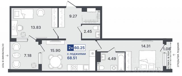 Продаётся 1-комнатная квартира в строящемся доме (ГП-2 (Сергиенко, д. 1)), срок сдачи: IV-кв. 2026, общей площадью 40.32 кв.м., на 3 этаже. Новый жилой комплекс от Специализированного застройщика "Звезда" расположен по адресу: г. Тюмень, по ул. Стройотрядовская.