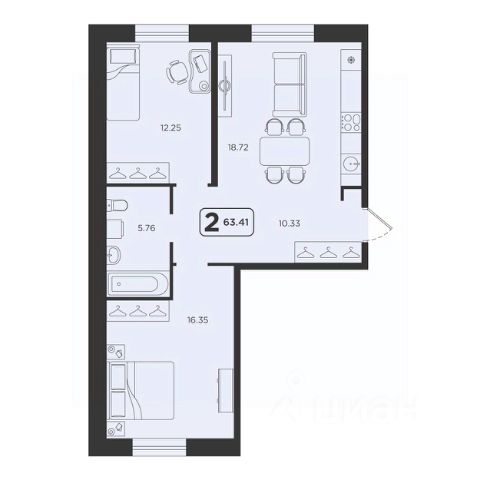 Продаётся 2-комнатная квартира в строящемся доме (ГП-4), срок сдачи: IV-кв. 2027, общей площадью 62.84 кв.м., на 6 этаже. Расположение, транспортная доступность Жилой комплекс "Горизонт" - это микрорайон, в состав которого входит девятнадцать 17-этажных односекционных монолитно-кирпичных зданий бюджетного класса. Микрорайон находится в северной части Тюмени, в Центральном административном округе, рядом с улицами Дружбы, Мельникайте и Тобольским трактом. Здесь ходит более десяти маршрутов общественного транспорта, на котором можно добраться до любого района города. К центральной части Тюмени от "Горизонта" можно доехать менее чем за пятнадцать минут. Инфраструктура Рядом с "Горизонтом" находятся: детские сады 165, 28, 63, детский сад-ясли 172, лицей 81, школа 36, поликлиника 8, супермаркеты "Магнит" и "Пятерочка", торговые центры "Ватутинский", "Северный", "Престиж". В соседних микрорайонах множество объектов инфраструктуры: торгово-развлекательный центр "Тюмень Сити Молл", (где находятся гипермаркеты "Ашан Сити", "Эльдорадо", десятки магазинов и бутиков, кафе, рестораны, боулинг, ручной зоопарк и кинотеатр), торговые центры "Зеленый берег", "Абсолют", колледж водного транспорта, гипермаркеты "Лента", "Леруа Мерлен", рынок "Лесная сказка", Дом культуры "Водник", спорткомплекс "Гагаринский" с 25-метровым бассейном, кроссфит-залом и паровой комнатой, спортивно-оздоровительный комплекс "Автотеплотехник", филиал Сбербанка, школа 48 им. Д.М. Карбышева. Экологическая ситуация в месте расположения "Горизонта" оценивается как очень хорошая. Микрорайон находится практически на границе с парком им. Гагарина, в нескольких сотнях метров от озер Алебашево и Круглое, рядом с Ватутинской рощей, садом Дружба и рекой Тура. Из окон зданий комплекса открываются живописные виды на великолепные окрестности. Надежность застройщика Микрорайон "Горизонт" построила тюменская компания "Аква", входящая в состав группы компаний ARSIB holding group, история которой началась в 1957 году с предприятия "Тюменьоблснабсбыт" Группа компаний ARSIB holding group занимается несколькими видами деятельности (сельским хозяйством, производством продуктов питания, торговлей, девелопментом), ей принадлежит ряд крупных торговых и торгово-развлекательных центров в Тюмени, а также Тюменский молочный завод. Микрорайон "Горизонт" - это первый проект компании ARSIB holding group на тюменском рынке жилищного строительства. Архитектурная концепция "Горизонта" была разработана компанией "Реконструкция 2000 и К". Основные строительно-монтажные работы при возведении микрорайона выполнила компания ООО "Строительно-монтажное управление 2". Архитектура В домах микрорайона "Горизонт" представлены студии и квартиры с количеством комнат от одной до трех площадью от 23,90 кв. м до 81,37 кв. м с потолками высотой 270 см. Все квартиры продаются с предчистовой отделкой: с входными металлическими сейф-дверями, стяжкой пола, остекленными балконами и лоджиями, горизонтальной разводкой труб отопле Купить квартиру в ЖК Горизонт в Тюмени.