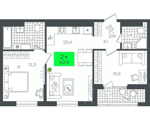 + уже установлен кухонный гарнитур с комплектом техники: вытяжка, варочная панель BOSCH, встроенный духовой шкаф GORENJE, посудомоечная машина и микроволновая печь ELECTROLUX.