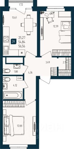 Продаётся 1-комнатная квартира в строящемся доме (Дом Башня (ГП-1)), срок сдачи: III-кв. 2027, общей площадью 36.26 кв.м., на 11 этаже. Новый жилой комплекс "Квартал Мятный" от Специализированного застройщика "Юпитер" расположен по адресу: г. Тюмень по ул. Кулибина.
