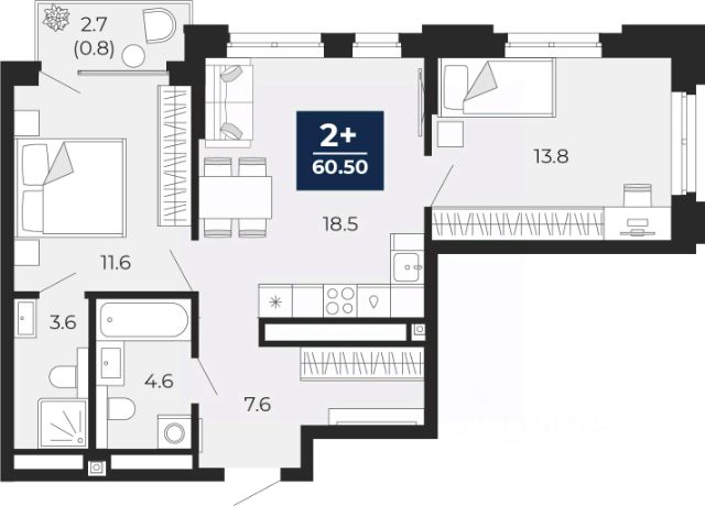 Двухкомнатная квартира с предчистовой отделкой в ЖК "Мириады" на 7 этаже. Общая площадь: 59.2 кв.м., жилая: 24.2 кв.м., площадь просторной кухни-столовой: 14.9 кв.м. Комнаты изолированные, все окна выходят на одну сторону. В квартире одна лоджия, два совмещенных санузла. Высота потолков 2.7 м. Дом монолитный, многоподъездный, переменной этажности, от 14 до 16 этажей. Квартира находится во 2-й секции высотой 16 этажей в корпусе ГП-72.102. На этаже 6 квартир. В подъезде 1 пассажирский и 1 грузовой лифт. На сегодняшний день строительство окончено, дом сдан в 4 квартале 2025 года. Оформление сделки по договору купли-продажи. Вселенная бесконечных историй. Ранее невиданный Тюмени масштаб: территория 240 гектаров и 1 650 000 м² застройки. Мириады это город масштабных перемен и больших возможностей. Город зеленых рощ и зеркальных озер. Город для работы, учебы и развлечений. Город для детей и их родителей. Город для всех и каждого. Проект расположен в районе Мыс рядом с ТРЦ "Тюмень Сити Молл" в границах улицы Тимофея Чаркова, Тобольского тракта и объездной дороги. Срок полного освоения территории - до 2034 года. #Z6CcVg