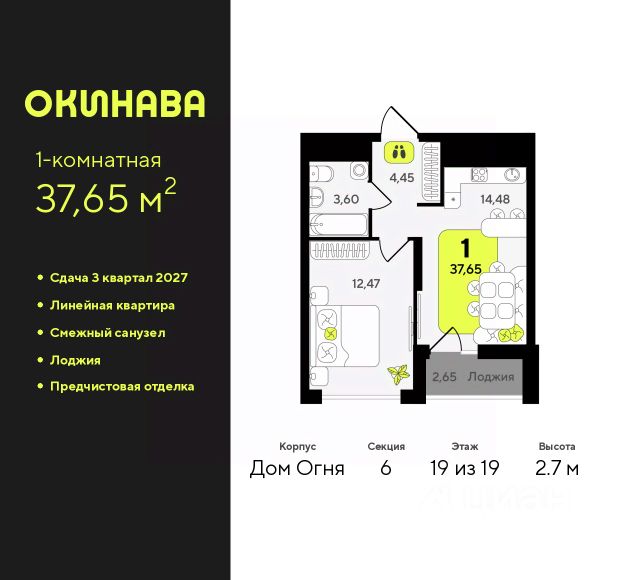 Продается 1-комн. квартира с предчистовой отделкой в ЖК "Окинава" на 13 этаже. Общая площадь: 40.4 кв.м., жилая: 12.63 кв.м., площадь просторной кухни-столовой: 14.48 кв.м. Все окна выходят на одну сторону. В квартире один балкон, один совмещенный санузел. Высота потолков 2.7 м. Квартира будет сдана с предчистовой отделкой: на полах стяжка под финишное покрытие, стены подготовлены под покраску или оклейку обоями, разведена вся электрика с подготовкой для установки выключателей и освещения. При желании вы можете заказать отделку под ключ, варианты возможных решений представлены в альбоме фотографий. Дом монолитный, многоподъездный, переменной этажности, от 11 до 19 этажей. Квартира находится в 1-й секции высотой 19 этажей в корпусе Дом Воды. На этаже 5 квартир. В подъезде 1 пассажирский и 1 грузовой лифт. Окончание строительства - 4 квартал 2026 года. Оформление сделки по договору долевого участия. ЖК "Окинава" это не просто жилой комплекс, это остров 4 стихий. Они отражаются во внешнем виде фасадов домов, обустройстве дворов и внутреннем оформлении холлов. Каждая из стихий это отдельный дом. Между домами раскинется большой двухуровневый пешеходный бульвар. Первый уровень прогулочный с местами для отдыха, амфитеатром и фонтанами. На втором уровне расположатся площадки для детей, спортивных игр и тренировок. Квартал будет располагать богатой инфраструктурой: на первых этажах разместятся магазины, пекарни, кофейни, пункты выдачи, аптеки, детские центры, цветочные салоны и многое другое, что сделает жизнь поистине комфортной. В жилом комплексе есть кладовые, а также несколько видов паркинга: уличный гостевой, закрытый теплый и паркинг в стилобате, попасть в который можно на лифте с любого жилого этажа. Дворы в каждом доме отражают его стихию, отличаясь по наполнению. Они дополняют друг друга, образуя единое дворовое пространство жилого комплекса. Закрытая территория, свободная от автомобилей, обеспечит безопасность и спокойный отдых. Холлы оформлены керамогранитом, зеркалами и разноуровневым освещением. Витражные входные группы, мягкие зоны ожидания, видеонаблюдение 24/7, вместительные колясочные и даже лапомойки для питомцев всё это будет в ЖК "Окинава". Жилой комплекс "Окинава" находится в активно развивающемся V заречном микрорайоне, недалеко от озера Алебашево, где в будущем расположится масштабный ивент-парк с зонами отдыха. Удобная транспортная развязка позволит добраться до центра всего за 15 минут. #Zwa9Ig