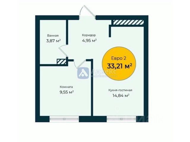 Отличная планировка - просторная кухня-гостиная и стильная спальня.