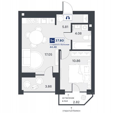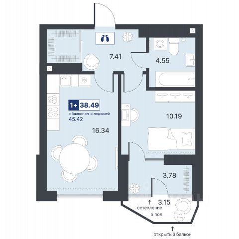 Продаётся 1-комнатная квартира в строящемся доме (ГП-1), срок сдачи: I-кв. 2027, общей площадью 38.49 кв.м., на 2 этаже. Новый жилой комплекс от Специализированного застройщика "Звезда" расположен в г. Тюмень по ул. Рылеева.