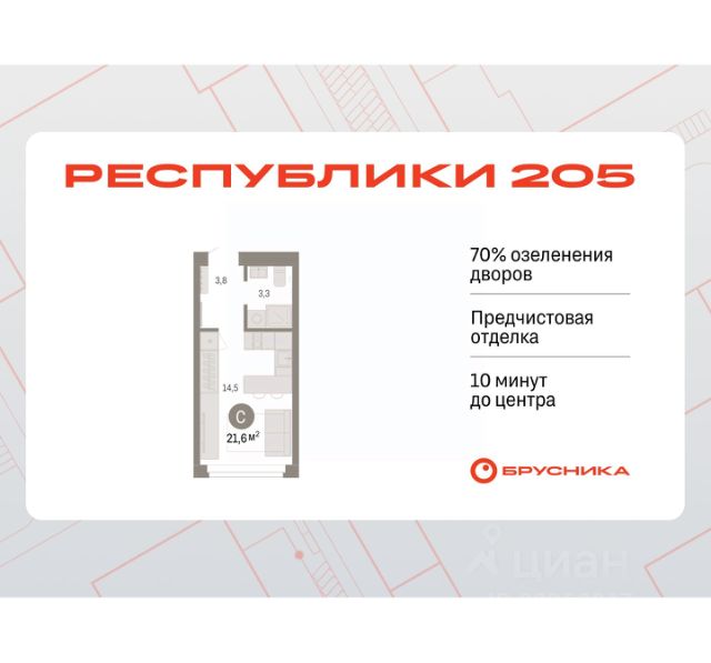 Квартира в счёт первоначального взноса по программе обмена. По всем вопросам звоните в офис продаж, наши менеджеры вам все расскажут! 3-комн. квартира с предчистовой отделкой в ЖК "Республики 205" на 5 этаже. Общая площадь: 76.66 кв.м., жилая: 38.6 кв.м., площадь просторной кухни-гостиной: 22.8 кв.м. Квартира угловая, очень светлая, естественная вентиляция при открытии окон. В квартире один балкон, один совмещенный санузел. Высота потолков 2.7 м. Купить квартиру можно с помощью программ покупки от застройщика Брусника: - ипотека по эксклюзивной ставке с помощью в получении положительного кредитного решения через сервис ипотечный брокер; - квартиры в рассрочку без процентов от застройщика Брусника; - обмен квартиры на новую. Получить одобрение ипотеки или рассрочку, а также осуществить обмен квартир можно онлайн. Дом монолитный, многоподъездный, переменной этажности, от 7 до 16 этажей. Квартира находится в 1-й секции высотой 9 этажей в корпусе 2. На этаже 10 квартир. В подъезде 1 грузовой лифт. Начало строительства - 1 квартал 2024 года. Окончание строительства - 1 квартал 2026 года. Оформление сделки по договору долевого участия. Район Проект расположен в границах улиц Пермякова, Энергетиков, Воровского и Республики. До центра города — 10 минут на машине. Рядом — автомобильная развязка на пересечении улиц Пермякова и Республики. В шаговой доступности есть школы, детские сады, поликлиники, крупный торговый центр, автовокзал и несколько скверов. Проект "Республики 205" — это проект комплексного развития территории, уникальный по своему наполнению. Переосмысляя бывшую территорию завода медицинского оборудования, мы создадим новое место силы — микрорайон, насыщенный деловой, развлекательной, рекреационной, игровой, образовательной и медицинской инфраструктурой. До каждого полезного сервиса здесь можно будет дойти за 15 минут. Локальными центрами "Республики 205" будут общественные пространства — скверы, парки, бульвары и площади. В границах нашего участка мы намерены разместить школу, рассчитанную на 1550 учеников, два детских сада на 300 мест и встроенный детский сад на 100 мест. В одном из цехов бывшего завода расположится креативный кластер "Кузница". Он станет площадкой для нескольких институций — галереи, лектория, книжного магазина-библиотеки, кинобара и точек креативного pop-up-ритейла. Пешеходные бульвары внутри района соединят между собой улицу ресторанов, детские и спортивные площадки, событийную площадь и летний кинотеатр. Идентификатор квартиры по базе застройщика: РСП-02-1-1. #Zs5Wcg