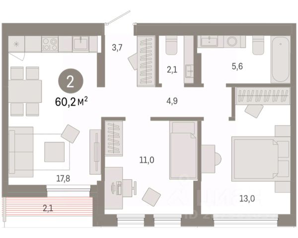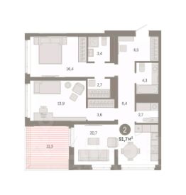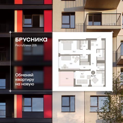 Квартира в рассрочку без процентов от застройщика. Эксклюзивные ипотечные условия. Дом будет сдан в 4 квартале 2025 года. По всем вопросам обращайтесь в офис продаж, мы вам все подробно расскажем. Продается двухкомнатная квартира с предчистовой отделкой в ЖК "Республики 205" на 6 этаже. Общая площадь: 69.69 кв.м., жилая: 21.4 кв.м., площадь просторной кухни-гостиной: 21 кв.м. Угловая квартира, окна oбecпeчивaют paвнoмepнoe ocвeщeниe в тeчeниe дня. В квартире один балкон, один совмещенный и один раздельный санузел. Терраса площадью 8.2 кв.м. представляет собой роскошную зону отдыха для проведение вечеров в кругу семьи и друзей или организация вечеринок. Высота потолков 2.6 м. Купить квартиру можно с помощью программ покупки от застройщика Брусника: - ипотека по эксклюзивной ставке с помощью в получении положительного кредитного решения через сервис ипотечный брокер; - квартиры в рассрочку без процентов от застройщика Брусника; - обмен квартиры на новую. Получить одобрение ипотеки или рассрочку, а также осуществить обмен квартир можно онлайн. Дом монолитный, многоподъездный, переменной этажности, от 9 до 17 этажей. Квартира находится в 1-й секции высотой 17 этажей в корпусе 1. На этаже 7 квартир. В подъезде 1 пассажирский и 1 грузовой лифт. Начало строительства - 2 квартал 2023 года. На сегодняшний день строительство окончено, дом сдан в 4 квартале 2025 года. Оформление сделки по договору купли-продажи. Район Проект расположен в границах улиц Пермякова, Энергетиков, Воровского и Республики. До центра города — 10 минут на машине. Рядом — автомобильная развязка на пересечении улиц Пермякова и Республики. В шаговой доступности есть школы, детские сады, поликлиники, крупный торговый центр, автовокзал и несколько скверов. Проект "Республики 205" — это проект комплексного развития территории, уникальный по своему наполнению. Переосмысляя бывшую территорию завода медицинского оборудования, мы создадим новое место силы — микрорайон, насыщенный деловой, развлекательной, рекреационной, игровой, образовательной и медицинской инфраструктурой. До каждого полезного сервиса здесь можно будет дойти за 15 минут. Локальными центрами "Республики 205" будут общественные пространства — скверы, парки, бульвары и площади. В границах нашего участка мы намерены разместить школу, рассчитанную на 1550 учеников, два детских сада на 300 мест и встроенный детский сад на 100 мест. В одном из цехов бывшего завода расположится креативный кластер "Кузница". Он станет площадкой для нескольких институций — галереи, лектория, книжного магазина-библиотеки, кинобара и точек креативного pop-up-ритейла. Пешеходные бульвары внутри района соединят между собой улицу ресторанов, детские и спортивные площадки, событийную площадь и летний кинотеатр. Идентификатор квартиры по базе застройщика: МЕД01-01-1-1. #ZZocM2