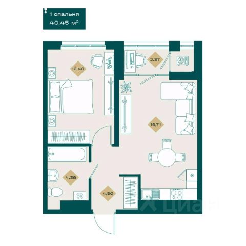Продаётся 1-комнатная квартира в строящемся доме (Тимофея Кармацкого, 1 ), срок сдачи: IV-кв. 2026, общей площадью 42.12 кв.м., на 4 этаже. Новый жилой комплекс "Секреты" от Специализированного застройщика "СТОУН ДЕВЕЛОПМЕНТ" расположен по адресу: г. Тюмень, по ул. Тимофея Кармацкого.