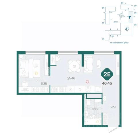 Просторная трешка с окнами на две стороны. В квартире просторная прихожая с нищами под вместительные шкафы для хранения. Две светлых спальни. Гостиная площадью более 20 м² с угловым остеклением, нишей для приготовления, обеденной и гостиной зонами, а также нишей для рабочего места.