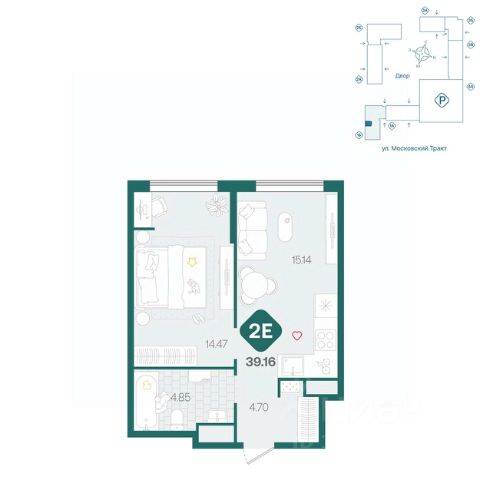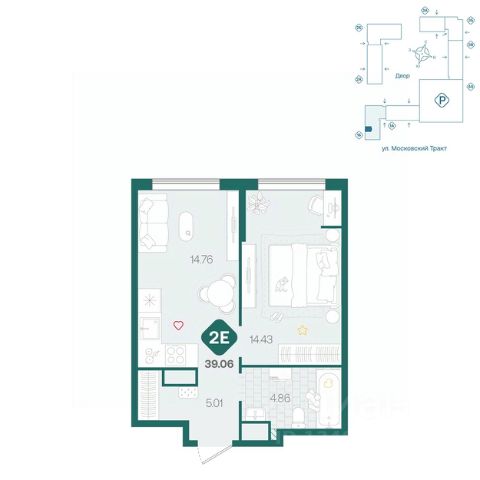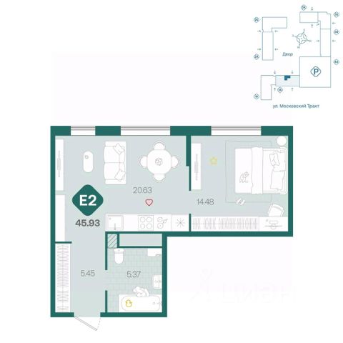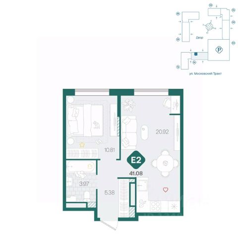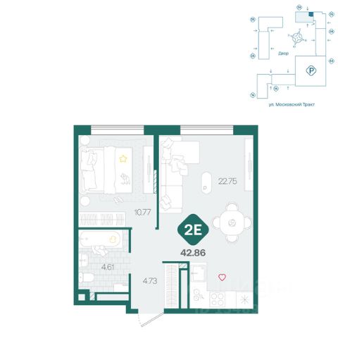 Всего 5 минут на машине до крупных ТРЦ "Колумб", "Кристалл", "Ашан", "Лента" и "Метро".