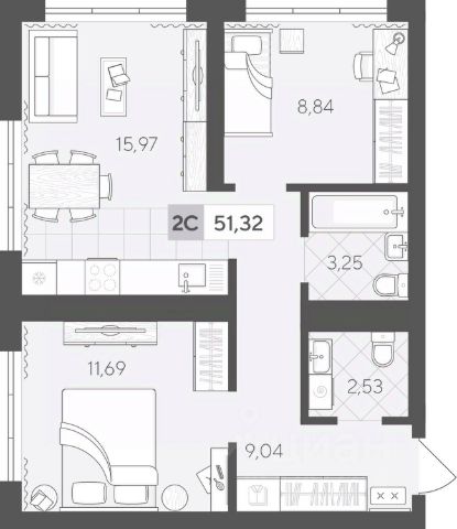 Продаётся 2-комнатная квартира в строящемся доме (ГП 2 (Сергея Корепанова, 34)), срок сдачи: IV-кв. 2027, общей площадью 51.32 кв.м., на 6 этаже. Новый жилой комплекс "Скандиа. Квартал у Леса" от Специализированного застройщика "СКАНДИА У ЛЕСА" расположен в г. Тюмень на ул. Бориса Прудаева.