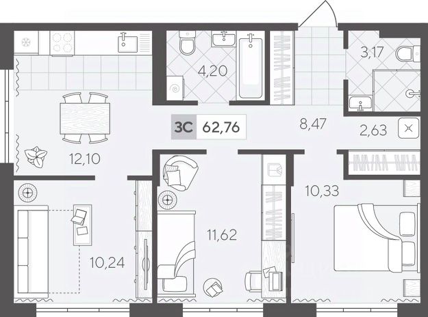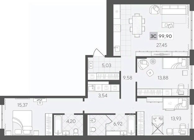 Квартал у Озера — это малоэтажные дома в скандинавском стиле, расположенные в живописном районе между озёрами Песьяное и Чистый пруд. Низкая плотность застройки, близость природы и разнообразие прогулочных маршрутов позволят насладиться покоем и отдохнуть от городской суеты. Просторная трёхкомнатная квартира 99.59 кв.м на 3 этаже с продуманной планировкой. Функциональная кухня-гостиная, три отдельные спальни и удобные зоны для хранения создают условия для комфортной и гармоничной жизни.