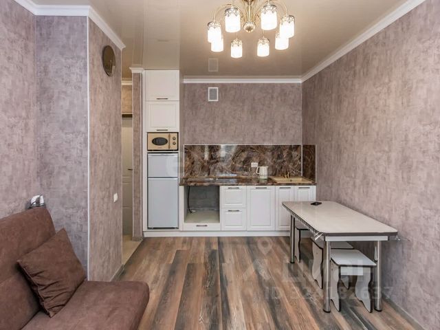 - Современная мебель: квартира обустроена мебелью высшего класса, что подчеркивает её стиль и комфорт.