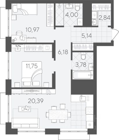 Два санузла, продуманные ниши под шкафы, эргономичные входные группы.