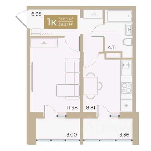 Продаётся 1-комнатная квартира в строящемся доме (Дом 5), срок сдачи: I-кв. 2026, общей площадью 31.85 кв.м., на 4 этаже. Новый жилой комплекс "Спутник-2" от специализированного застройщика "Спутник-2" расположен по адресу: г. Тюмень, по ул. Алматинская.