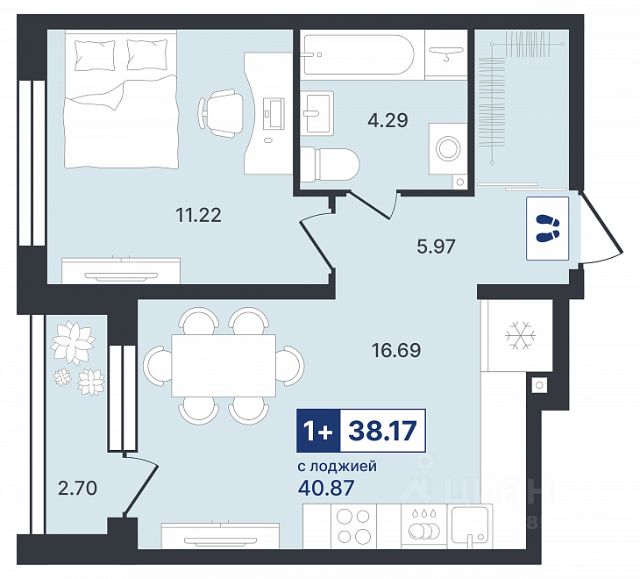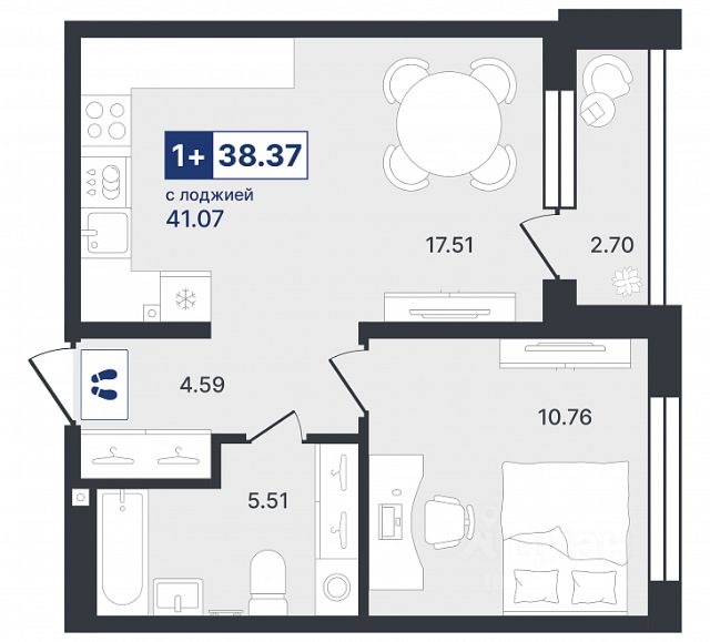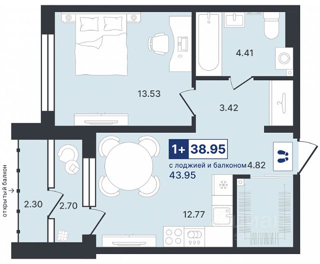 Продаётся 1-комнатная квартира в строящемся доме (ГП-2 (Ставропольская, 1к4)), срок сдачи: IV-кв. 2026, общей площадью 38.95 кв.м., на 5 этаже. Новый жилой комплекс "Один плюс один" от Специализированного застройщика "Звезда" расположен по адресу: г. Тюмень, ул. Ставропольская, 1А.