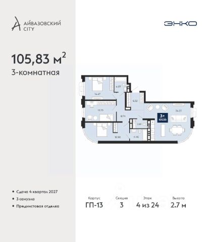 Продаётся 4-комнатная квартира в строящемся доме (ГП-1 (Мельникайте, 42к1)), срок сдачи: IV-кв. 2026, общей площадью 107.93 кв.м., на 18 этаже. "Страна.Прибрежная" — жилой квартал с богатой историей, расположившийся в районе улиц ЕлизароваДамбовскаяМельникайте. Раньше здесь селились работники знаменитого Тюменского судостроительного завода, а сегодня их преемники могут почувствовать себя настоящими мореплавателями, которые отправились в кругосветное путешествие на огромном лайнере. Будущие жители прикоснутся к истории локации и пропитаются истинной романтикой приключений и открытий. И всё это в условиях максимального комфорта, который в "Стране.Прибрежной" окружает на всей территории: двор без машин и случайных прохожих; подземный паркинг; дизайнерские парадные; дворовое пространство разделено на несколько зон, чтобы каждый нашел себе занятие по душе; квартиры с лоджиями, балконами, с террасами и панорамными окнами, чтобы жители могли любоваться красивой панорамой города; круглосуточное видеонаблюдение и собственная охрана 24/7; на первых этажах квартала размещена необходимая коммерция — не придётся надолго уходить из дома, чтобы решить бытовые вопросы, — нужное под рукой.