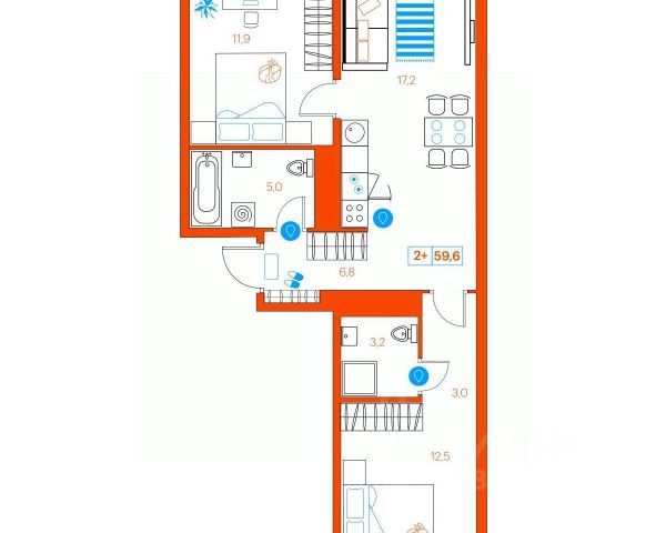 Продаётся 2-комнатная квартира в сданном доме (Ветеранов Труда, 36к1), срок сдачи: II-кв. 2025, общей площадью 59.6 кв.м., на 4 этаже. Новый жилой комплекс от Специализированного застройщика "Суперский" расположен в Ленинском округе Тюмени на ул. Ветеранов труда.