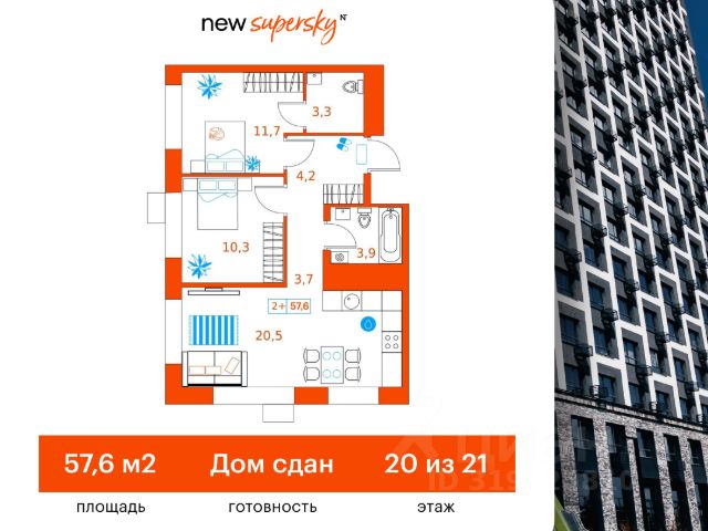 Предлагаем Вашему вниманию квартира в ЖК SuperSky в районе ул Ватутина.