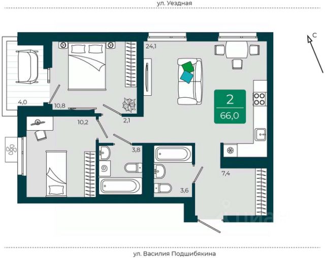 2-комн. квартира от застройщика в ЖК "Уездные кварталы" на 3 этаже. Квартира без отделки, полностью готова к ремонту. Общая площадь: 67.3 кв.м., жилая: 25.6 кв.м., площадь просторной кухни-столовой: 22.5 кв.м. Квартира угловая, окна oбecпeчивaют paвнoмepнoe ocвeщeниe в тeчeниe дня. В квартире одна лоджия, два совмещенных санузла. Высота потолков 2.72 м. Дом монолитный, двухподъездный, переменной этажности, от 9 до 17 этажей. Квартира находится во 2-й секции высотой 9 этажей в корпусе ГП-5.1. На этаже 7 квартир. В подъезде 1 грузовой лифт. Окончание строительства - 4 квартал 2026 года. Оформление сделки по договору долевого участия. "Уездные кварталы" - семейный жилой комплекс комфорт-класса с авторской архитектурой и трехуровневым ландшафтным озеленением. Рядом расположены крупные транспортные развязки, которые позволяют добраться в любую точку города за 15 минут. Жилой комплекс находится в современном районе с развитой инфраструктурой, на первой линии Тюменской Слободы. Вокруг есть всё необходимое в шаговой доступности: новые детские сады и школы, остановки общественного транспорта, магазины, кафе и рестораны, поликлиника, детская школа искусств, парки и спортивный комплекс. На первых этажах квартала расположена собственная коммерческая сеть, а также свой соседский центр. Проект включает 5 домов переменной этажности с более чем 100 планировками - с террасами, французскими балконами и мастер-спальнями. Закрытые дворы оборудованы интерактивными площадками для игр, спортивными зонами и местами тихого отдыха. Вдоль жилого комплекса расположен пешеходный бульвар с сухим фонтаном, а для автомобилей предусмотрен теплый паркинг. Часть квартир можно приобрести с ремонтом, мебелью и техникой от застройщика, а расходы включить в ипотечный платеж. #zmsDd9