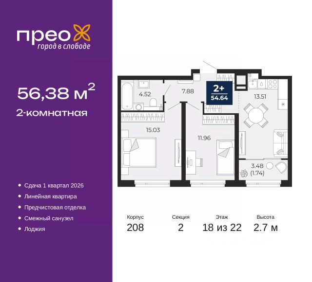 Спешите оформить бронирование, пока действует скидка, срок предложения ограничен! Стоимость квартиры указана со скидкой, ваша экономия составит 928,874 руб. Информация по телефону, наши менеджеры вам все расскажут. Однокомнатная квартира-студия с предчистовой отделкой в ЖК "Прео" на 3 этаже. Общая площадь: 35.78 кв.м., площадь гостиной 23.87 кв.м., из которых 5 кв.м. выделено под кухонную зону. Все окна выходят на одну сторону. В квартире один балкон, один совмещенный санузел. Высота потолков 2.7 м. Дом монолитный, трехподъездный, переменной этажности, от 14 до 22 этажей. Квартира находится в 3-й секции высотой 14 этажей в корпусе 208. На этаже 6 квартир. В подъезде 1 пассажирский и 1 грузовой лифт. Окончание строительства - 1 квартал 2026 года. Оформление сделки по договору долевого участия. Преображенский — один из самых привлекательных районов для жизни! Это полностью самостоятельный жилой район с точки зрения инфраструктуры. Преображенский находится между Московским и Червишевским трактами в квартале улиц Закалужская — Вьюжная — Александра Протозанова. Не нужно ждать, когда появится инфраструктура — переезжайте на всё готовое. Вблизи расположены действующие школа и детский сад. В этом году откроется еще один сад, а в следующем году — школа. По соседству с Преображенским запланировано строительство городского парка "Комарово" площадью 38 гектар. За 10 минут можно доехать на автомобиле до крупных ТРЦ: "Лента", "Кристалл", "Леруа Мерлен", "Метро" и "Ашан". С 2018 года в районе открыт Соседский центр — пространство, созданное для формирования добрососедской среды, совместного досуга, общения и реализации соседских инициатив. Здесь проходят встречи соседей, а также сами жители района организовывают мероприятия. Организатором такого события может стать любой желающий. В квартирах выполнена качественная предчистовая отделка. Гладкие стены с финишным выравниванием по маякам. Ровный потолок для установки натяжного потолка. Установлены пятикамерные окна с двойным стеклопакетом (3 стекла). Дизайнерские холлы с видеонаблюдением, безбарьерным и прозрачным входом всегда светло и спокойно. На первом этаже есть просторные колясочные, где все жители могут оставлять свои коляски и велосипеды. В Преображенском есть всё, что нужно для активного отдыха и занятий спортом. Мы сделали большое футбольное поле с безопасным покрытием. Также установили хоккейный корт, который оборудован по всем необходимым стандартам. Во дворах можно делать упражнения на специальных площадках с турниками. Весь район мы обустроили велодорожками, которые связаны в единый маршрут. У нас есть сухие фонтаны, бьющие из земли, деревья, веревки, сетки, скалодром, газон, песок и резинка — осталось просто дать своему ребенку право на свободную игру. По-настоящему хорошие дворы — это те, которые дети предпочитают соцсетям и телевизору. Аккредитация в банках: ОАО "Альфа-Банк", ПАО "Банк Уралсиб", ПАО "Газпромбанк", "Сбербанк России", ПАО Банк "ВТБ" и других. #ZMDe