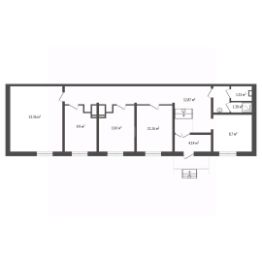 Общая площадь 194 м2. Планировка кабинетного типа. Помещение 83,9 м2 сдано в долгосрочную аренду студии растяжки. 4 кабинета (11,1 м2; 13,6 м2; 29,8 м2; 18,5 м2) имеют общую приемную зону.