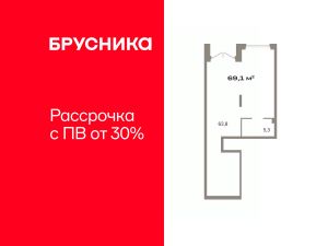 Помещение свободного назначения на 1 этаже, общая площадь 69.14 кв.м., без отделки. Стоимость помещения 19,040,000 руб., цена за кв.м 275,383 руб.