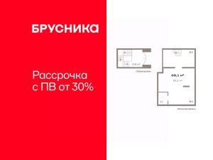 Помещение свободного назначения на 1 этаже, общая площадь 62.2 кв.м., без отделки. Стоимость помещения 14,330,000 руб., цена за кв.м 230,385 руб.