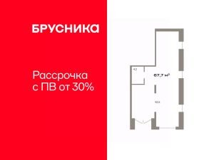 Помещение свободного назначения на 1 этаже, общая площадь 67.7 кв.м., без отделки. Стоимость помещения 15,540,000 руб., цена за кв.м 229,542 руб.