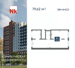Помещение свободного назначения на 1 этаже, общая площадь 79.62 кв.м., без отделки. Стоимость помещения 19,380,000 руб., цена за кв.м 243,406 руб.