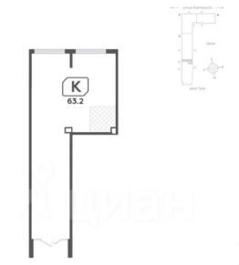 Помещение свободного назначения на -1 этаже, общая площадь 62.93 кв.м., без отделки. Стоимость помещения 10,890,000 руб., цена за кв.м 173,049 руб.