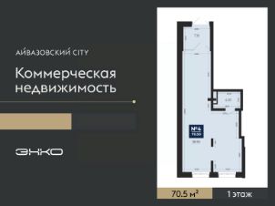 Помещение свободного назначения на 1 этаже, общая площадь 70.5 кв.м. Стоимость помещения 18,300,000 руб., цена за кв.м 259,574 руб.